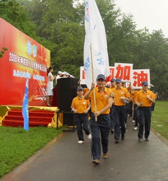 6月3日上午,華南植物園彩旗飄揚,人潮涌動,在雄壯的國歌聲中,中科院舉辦的迎奧運全民健身展示活動拉開了序幕。當(dāng)我院260名職工,在院領(lǐng)導(dǎo)的帶領(lǐng)下健步走過主席臺時,會場響起了熱烈的掌聲。在微微細(xì)雨中,我院全體職工完成了近半個小時的越野跑,整齊的隊形、響亮的口號展示了我院職工良好的精神面貌和體育精神,贏得了參加活動的有關(guān)領(lǐng)導(dǎo)和兄弟單位的好評。