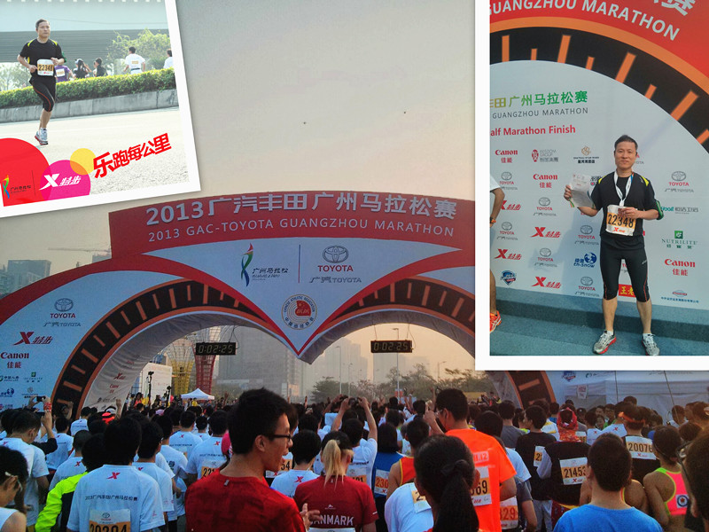 由中國(guó)田徑協(xié)會(huì)、廣州市人民政府主辦的2013廣汽豐田廣州馬拉松賽于11月23日在廣州花城廣場(chǎng)正式開跑。中科院廣州生物醫(yī)藥與健康研究院劉勁松研究員完成了他首個(gè)半程馬拉松并創(chuàng)造了個(gè)人最好成績(jī),完賽時(shí)間2小時(shí)2分52秒,在完賽的2299名男子半程馬拉松選手中排名617。