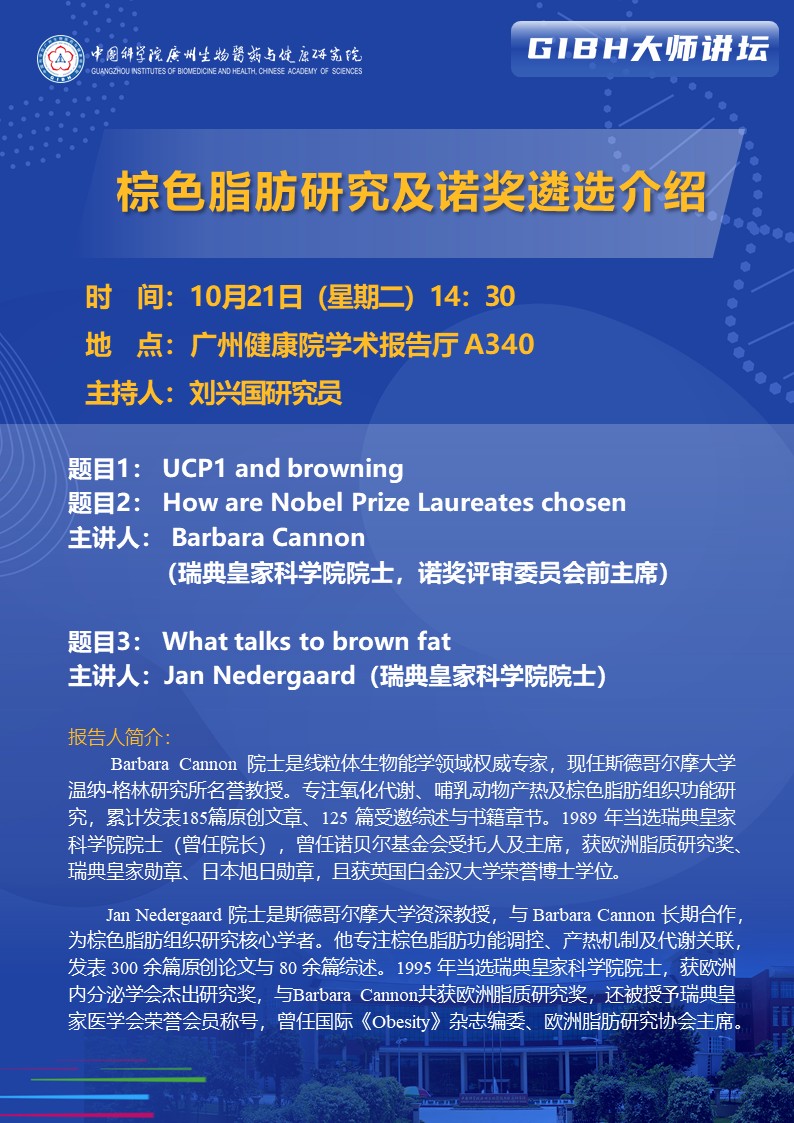 2025年10月21日大師講壇:棕色脂肪研究及諾獎遴選介紹