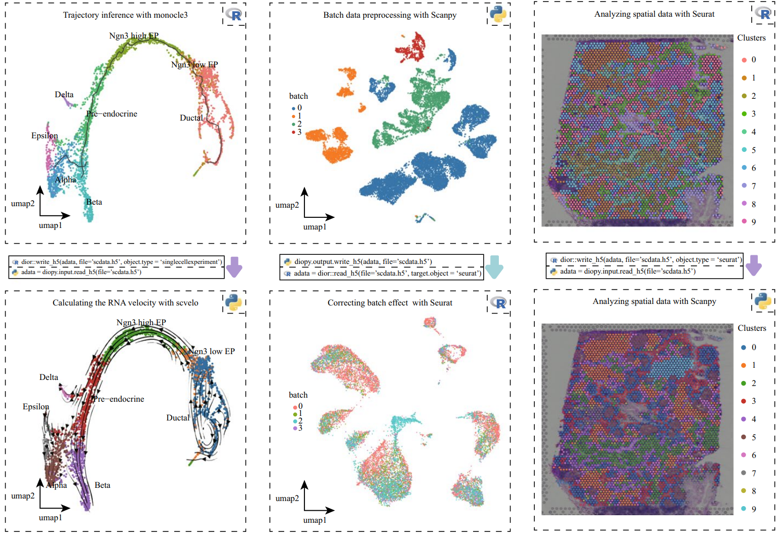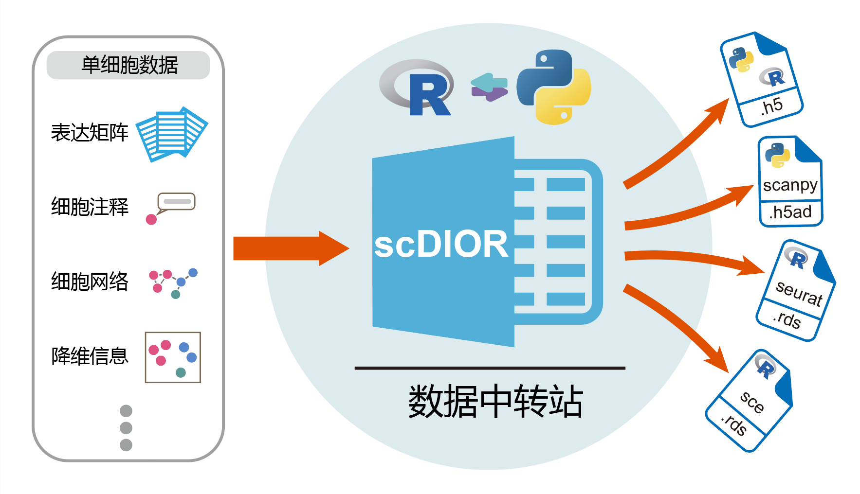 scDIOR很方便地實現(xiàn)數(shù)據(jù)在平臺間的轉(zhuǎn)換,將不同工具的優(yōu)勢連接起來