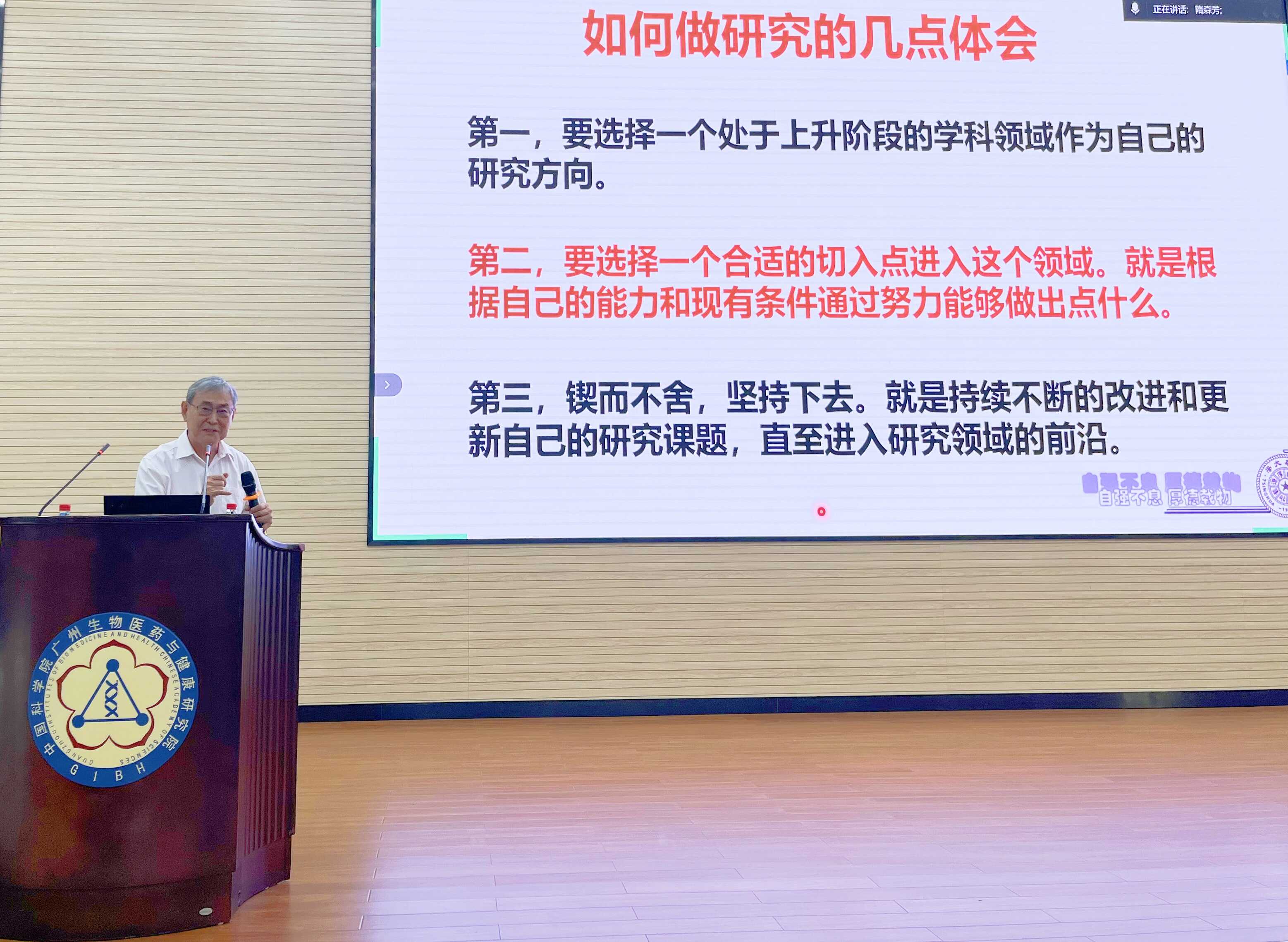 9月16日,中國科學院廣州生物醫(yī)藥與健康研究院(以下簡稱“廣州健康院”)邀請中國科學院院士、清華大學教授隋森芳作學術報告。本次活動由廣州健康院副院長(主持工作)孫飛主持,吸引了百余名師生參加。