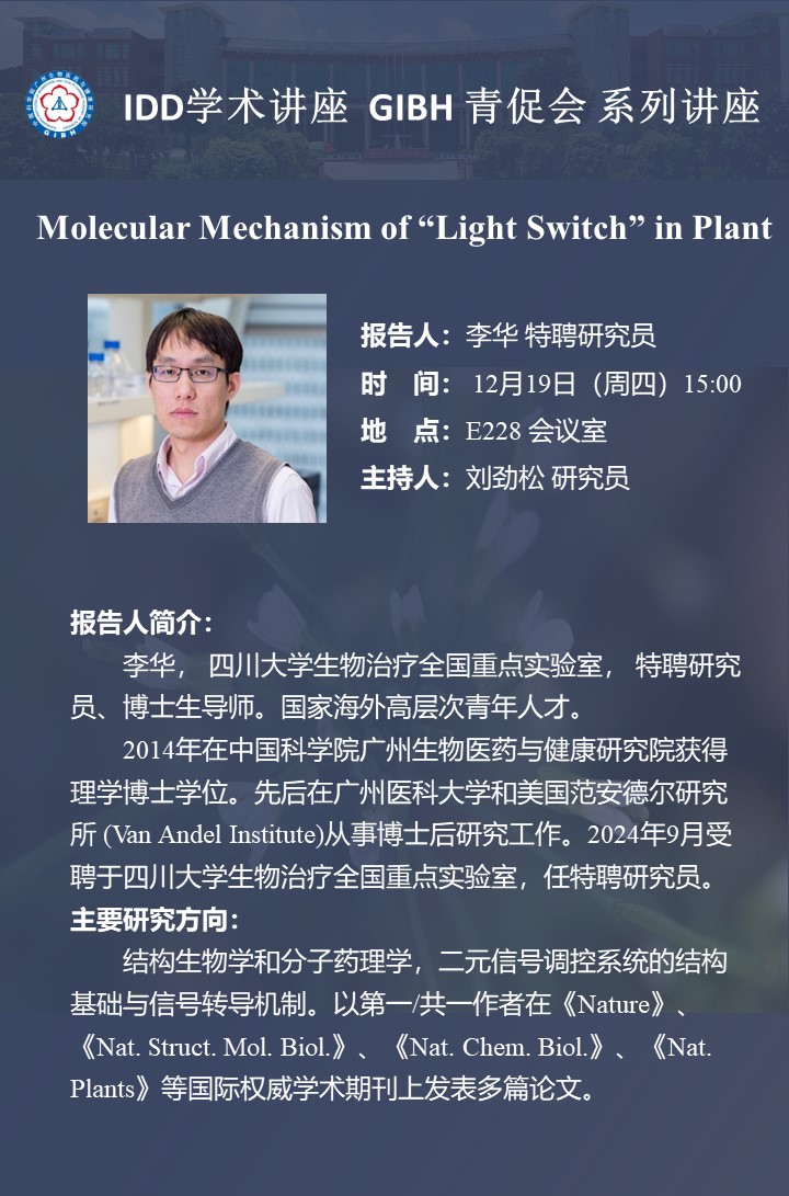 2024年12月19日IDD學(xué)術(shù)講座&GIBH青促會系列講座:Molecular Mechanism of “Light Switch” in Plant