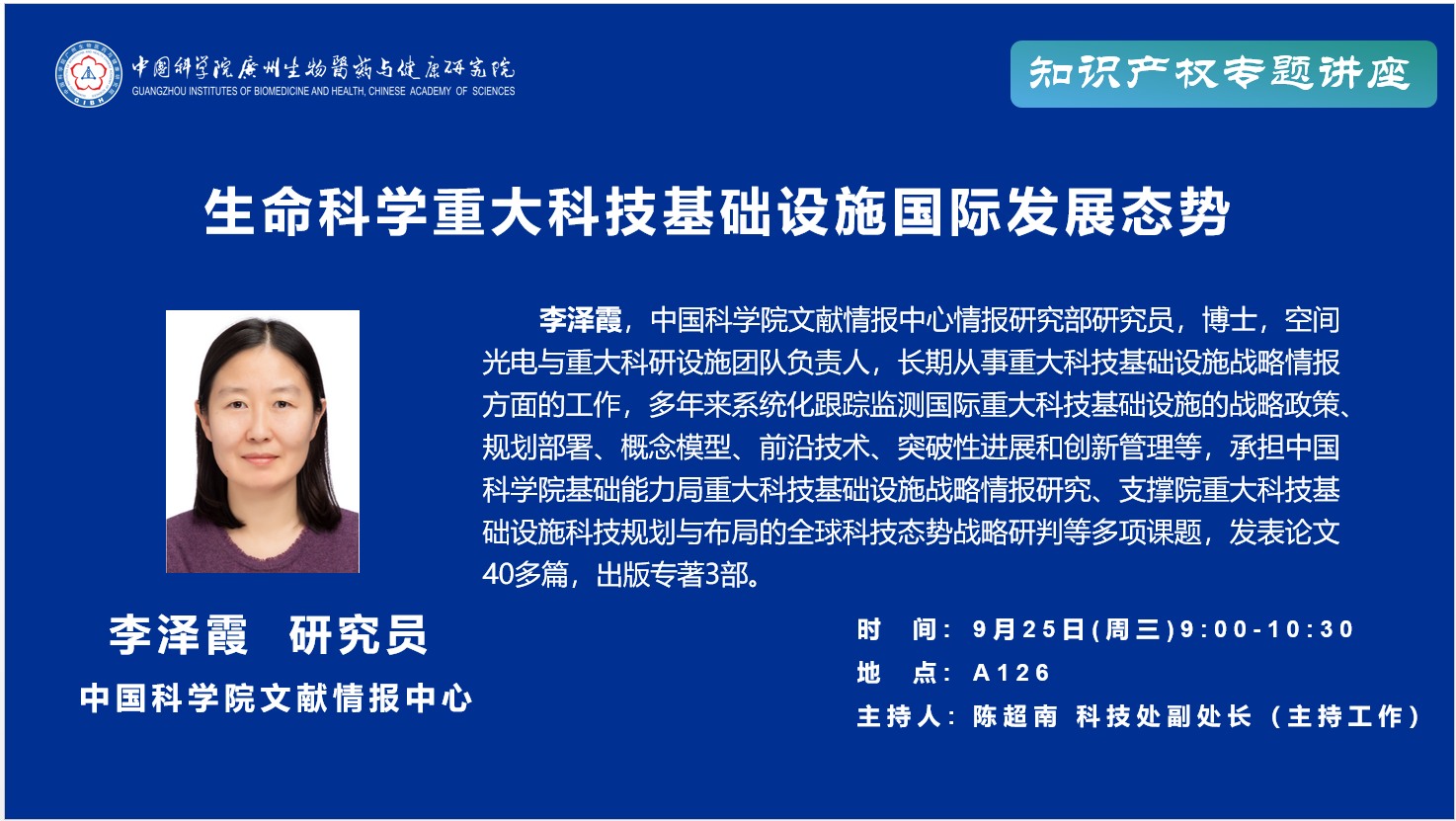 2024年9月25日知識產(chǎn)權(quán)專題講座:生命科學重大科技基礎(chǔ)設(shè)施國際發(fā)展態(tài)勢;重大科技基礎(chǔ)設(shè)施知識產(chǎn)權(quán)相關(guān)問題探討