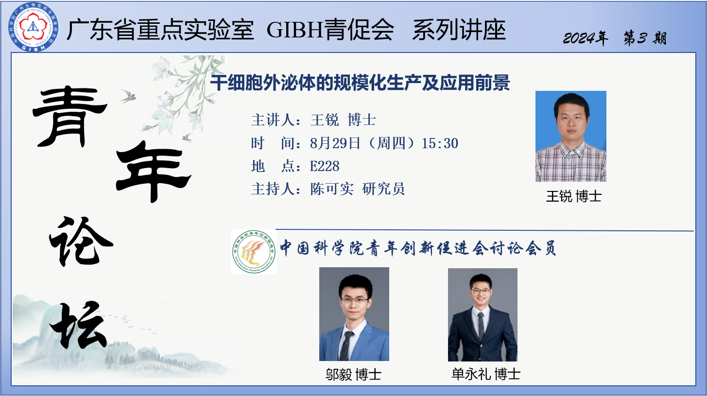 2024年8月29日廣東省重點(diǎn)實(shí)驗(yàn)室GIBH青促會(huì)系列講座(2024年第3期):干細(xì)胞外泌體的規(guī)?;a(chǎn)及應(yīng)用前景
