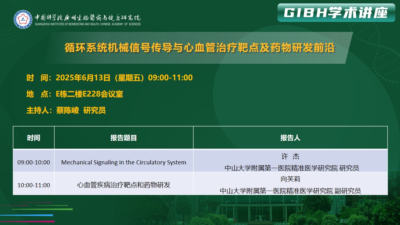 2025年6月13日學(xué)術(shù)講座:循環(huán)系統(tǒng)機(jī)械信號傳導(dǎo)與心血管治療靶點及藥物研發(fā)前沿