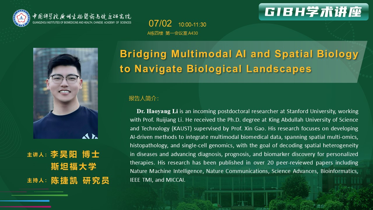 2025年7月2日講座:Bridging Multimodal AI and Spatial Biology to Navigate Biological Landscapes