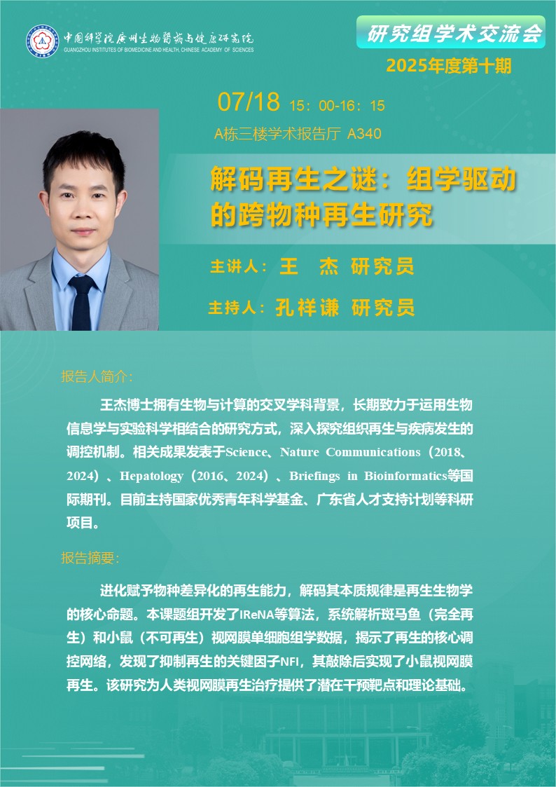 2025年7月18日研究組學(xué)術(shù)交流會(huì)(2025年度第十期):解碼再生之謎:組學(xué)驅(qū)動(dòng)的跨物種再生研究