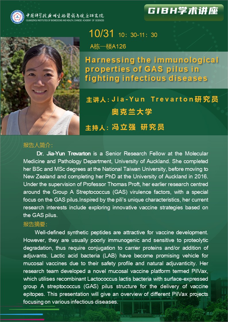2025年10月31日學(xué)術(shù)講座:Harnessing the immunological properties of GAS pilus in fighting infectious diseases