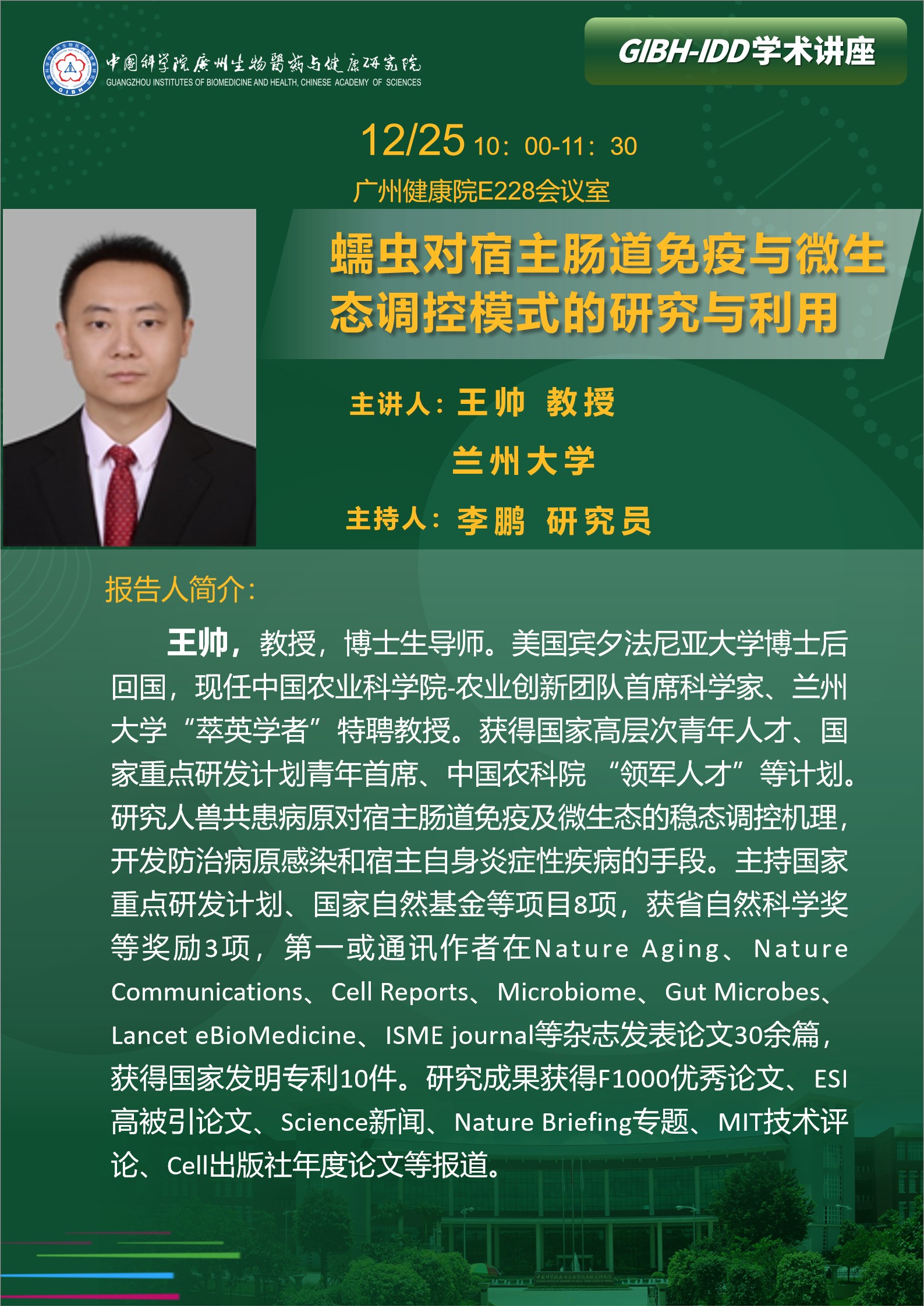2025年12月25日學(xué)術(shù)講座:蠕蟲對(duì)宿主腸道免疫與微生態(tài)調(diào)控模式的研究與利用