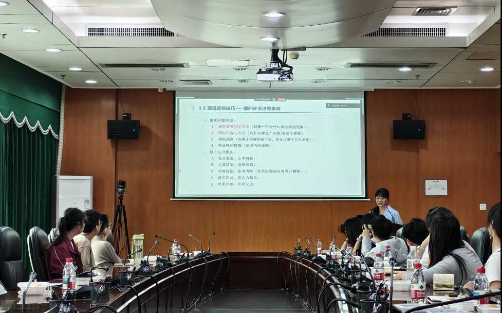 向丹則以《畢業(yè)答辯通關(guān)指南》為題,從PPT核心框架搭建、設(shè)計(jì)原則及提問(wèn)環(huán)節(jié)注意事項(xiàng)展開(kāi)分享。她提醒同學(xué)們?cè)跍?zhǔn)備階段應(yīng)做到充分全面、心中有數(shù),答辯過(guò)程中要認(rèn)真傾聽(tīng)、準(zhǔn)確理解問(wèn)題,確?;卮鹁珳?zhǔn)到位。