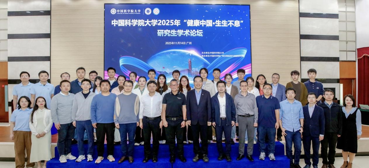 11月14日,由中國科學(xué)院大學(xué)主辦、中國科學(xué)院廣州生物醫(yī)藥與健康研究院(以下簡稱“廣州健康院”)承辦的中國科學(xué)院大學(xué)2025年“健康中國·生生不息”研究生學(xué)術(shù)論壇在廣州舉行。本次論壇緊扣國家“健康中國”戰(zhàn)略,聚焦生命科學(xué)、醫(yī)學(xué)、藥學(xué)等前沿學(xué)科交叉,吸引了全國20余所高校及科研院所的300余名專家學(xué)者及青年學(xué)子參會。