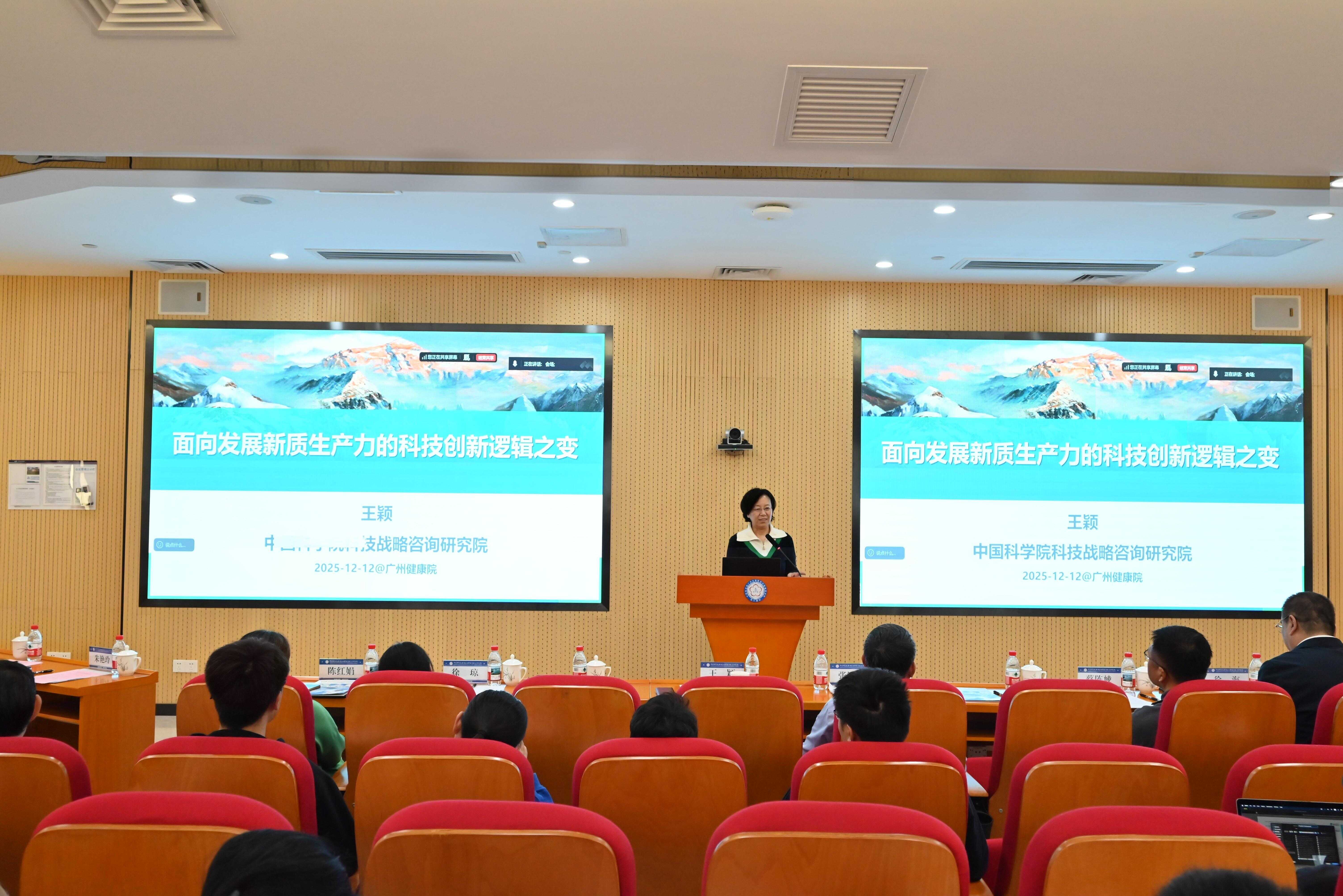 會議特邀中國科學院科技戰(zhàn)略咨詢研究院研究員王穎作專題報告。廣州健康院黨委書記、副院長張鴻翔,黨委副書記、紀委書記徐海,副院長蔡陳崚出席會議。廣州健康院黨委委員、學生思政工作領(lǐng)導小組、教育工作領(lǐng)導小組、課程思政工作小組,以及全體研究生導師、兼職輔導員、心理聯(lián)絡員、研究生會成員、心理委員等100余人參會。會議由徐海、蔡陳崚分段主持。